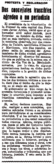 La Voz de la Merindad había tomado ya partido por los nacionales y, en esta ocasión, no hay protesta, se dedicaba a publicar los nombres de aquellos que aportaban dinero para financiar la rebelión. Hoy, un monolito en el cementerio de Tafalla, recuerda a las victimas de esa barbarie. |
